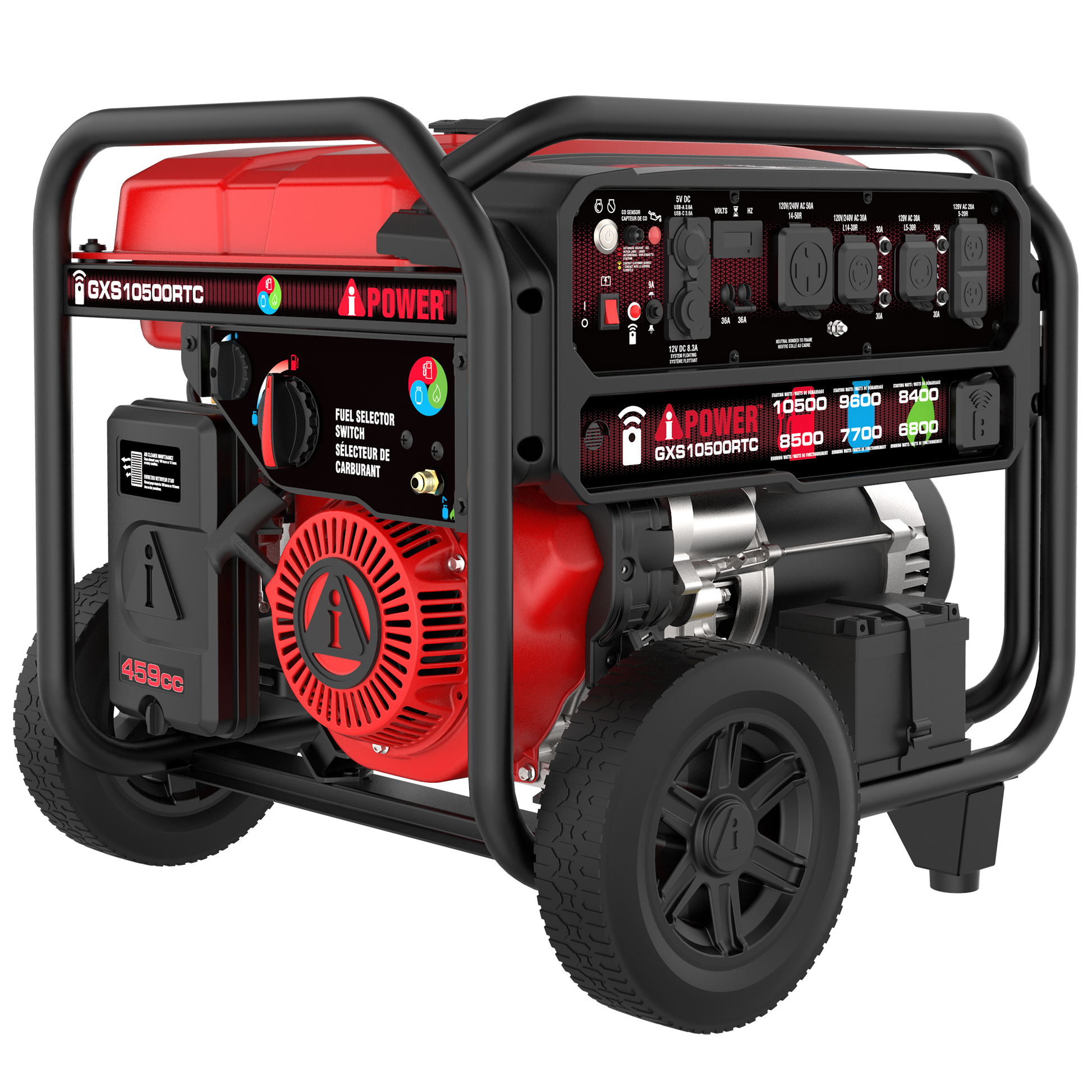 With a performance series 459cc OHV engine with cast iron sleeve and low oil shutdown, the A-iPower GXS10500RTC Tri-Fuel Remote Control Generator runs on gasoline, propane, or NG fuels giving you flexibility while out on the road or during an emergency.