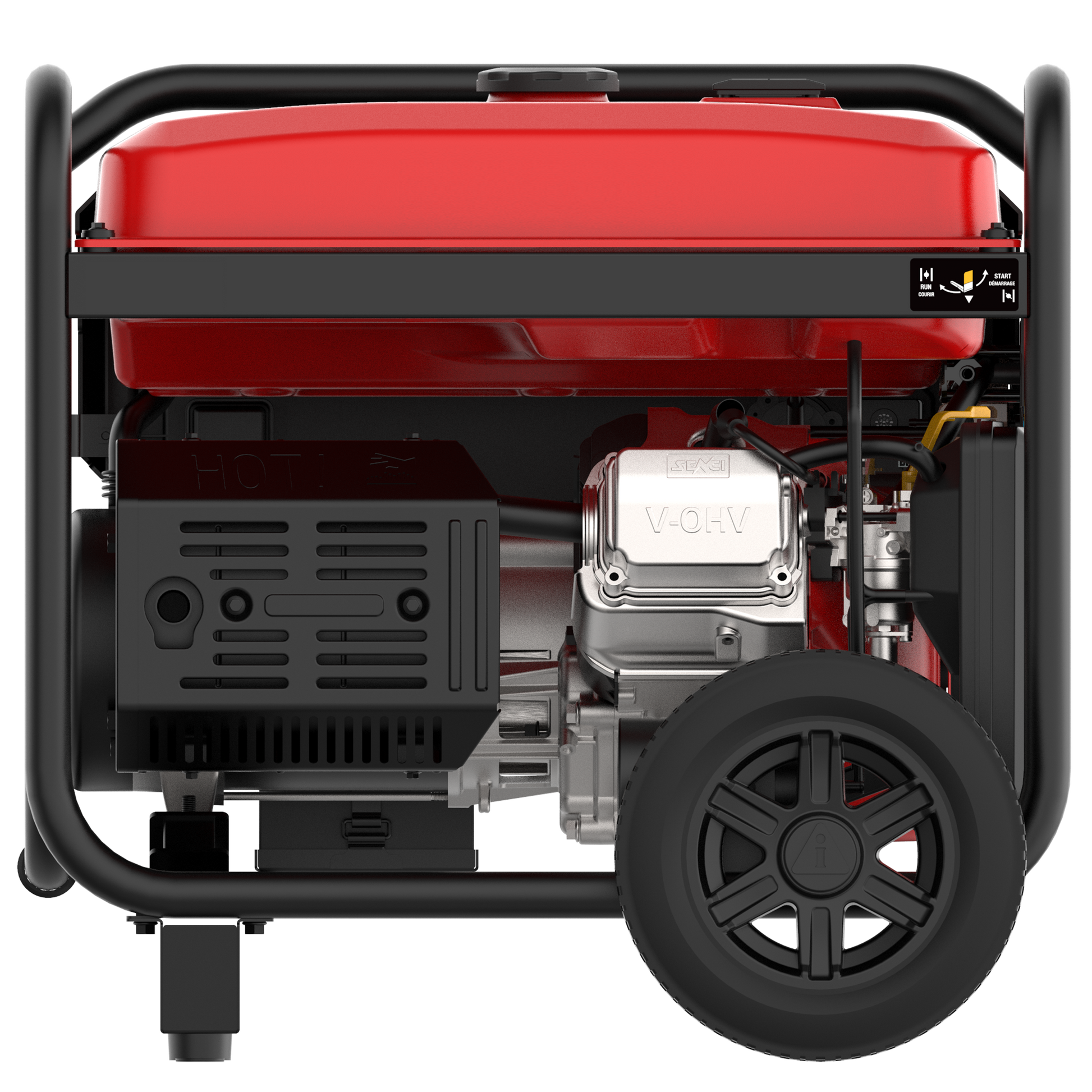With a digital data center for quick and easy access, users can easily know about the Voltage (V), Frequency (Hz), and Total Run Time (Hour). The rubber outlet covers help guard against moisture, dust, and debris, while the unit is built tough with a durable, automotive-style finish.