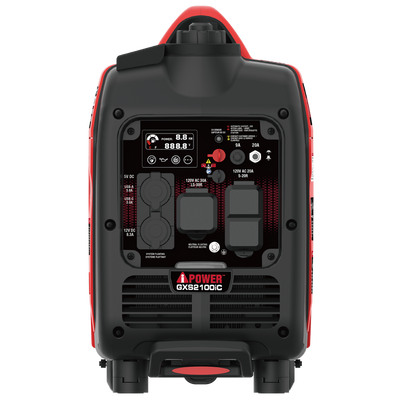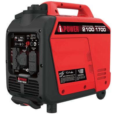 | With a completely new design for superior weight reduction, the A-iPower GXS2100iC Inverter Generator is powered by an 80cc OHV high performance 4-cycle engine. It has 2,100 starting watts and 1,700 running watts with <3% THD of clean power output, making it sensitive to keep electronics safe. Featuring low idle technology, it has an extended run time of 9 hours at 25% load, plus it has parallel ports for double the power output when linked together. Operating at as low as 62 decibels, making it ideal for home, camping, tailgating, and Rving, the unit has a built in LED control panel light and a digital data center that provides voltage, frequency, hours, power & fuel levels, and output/overload/oil level status along with fuel saving low idle and reset functions. The inverter also has factory installed telescoping handle and wheels. | Regular price