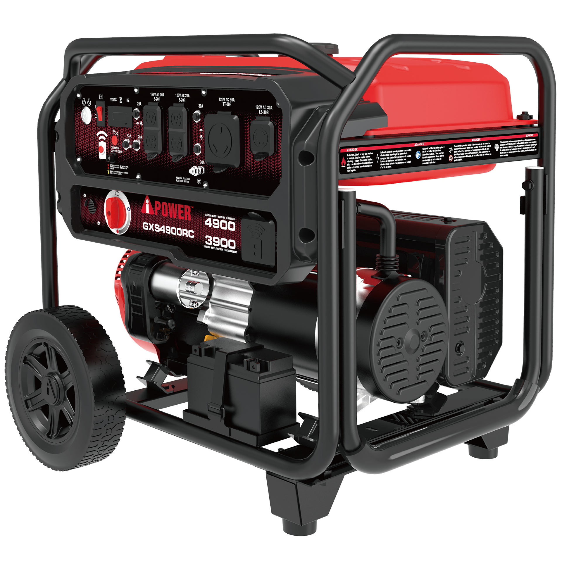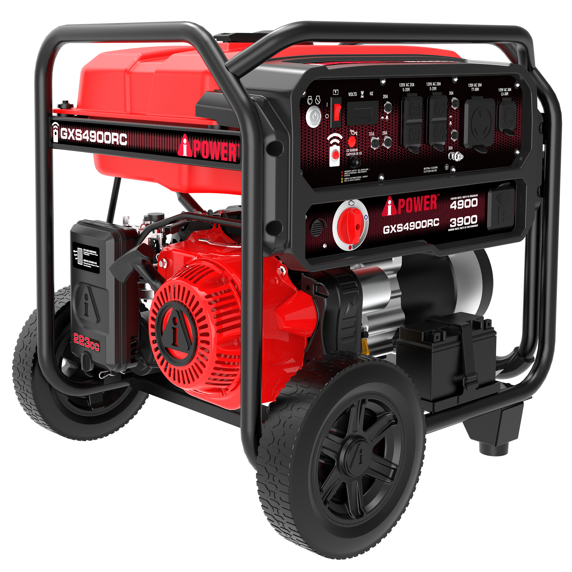 | Powered by a performance series 223cc OHV engine with cast iron sleeve and low oil shutdown, the A-iPower Remote Control Generator has 4,900 starting watts and 3,900 running watts. The 6.3-gallon fuel tank offers extended run time of up to 20 hours at 25% load. Easy to transport with folding handle and wheels, the built tough heavy duty frame construction has a durable automotive style finish while the rubber outlet covers help guard against moisture, dust, and debris. Featuring convenient, built in on-board storage and a digital data center that displays voltage, frequency, and hours, the unit offers simple starting via recoil, electric, and remote start, with a battery included. It also has a CO Sensor with automatic shutdown that monitors and reacts to carbon monoxide levels. | Regular price