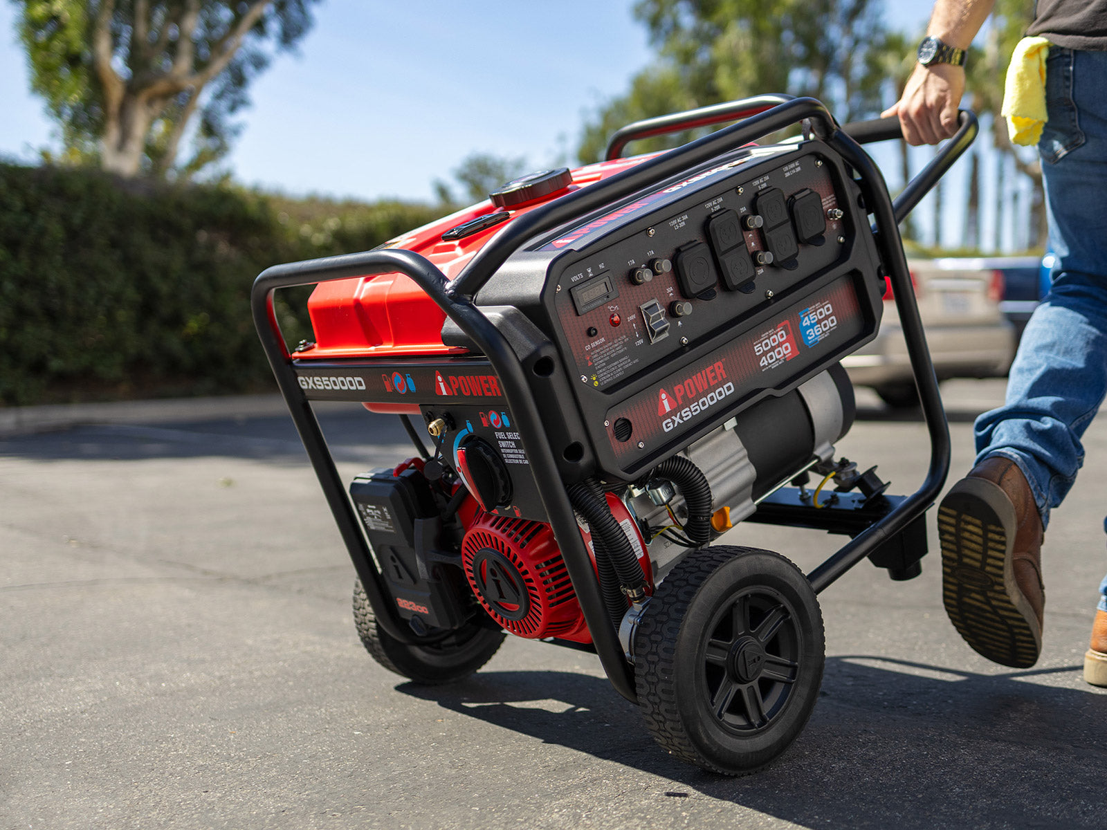 Featuring a 223cc OHV engine with cast iron sleeve and low oil shutdown, the GXS5000D Dual Fuel Portable Generator has 5,000 starting watts and 4,000 running watts on gasoline and 4,500 starting watts and 3,600 running watts on propane. The dual fuel option offers flexibility while out on the road or during an emergency. The 6.3-gallon fuel tank provides an extended run time of up to 20 hours at 25% load.