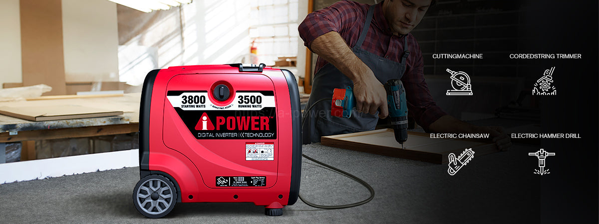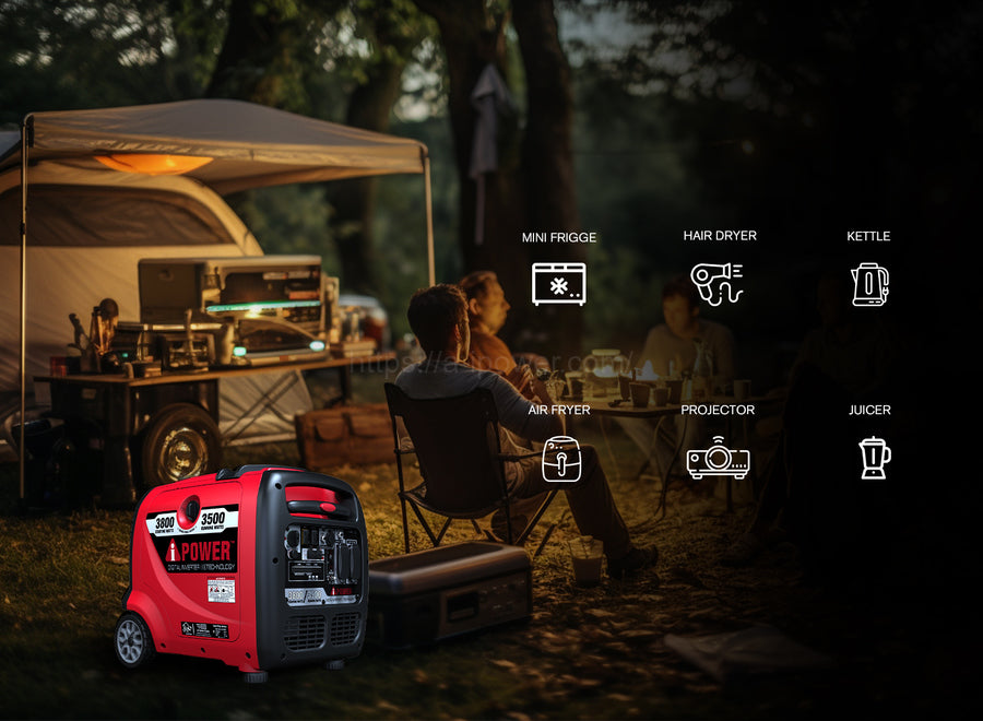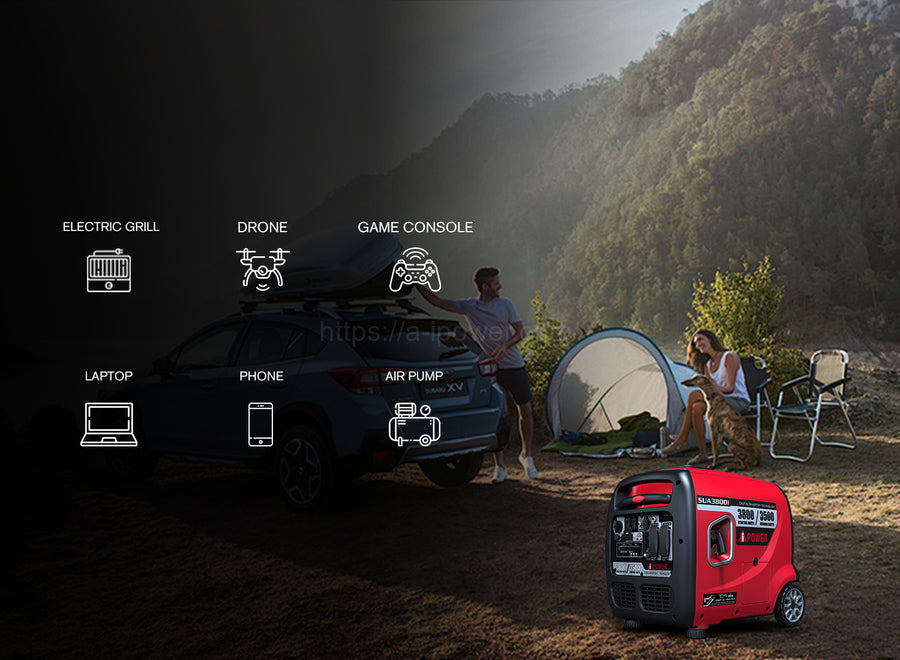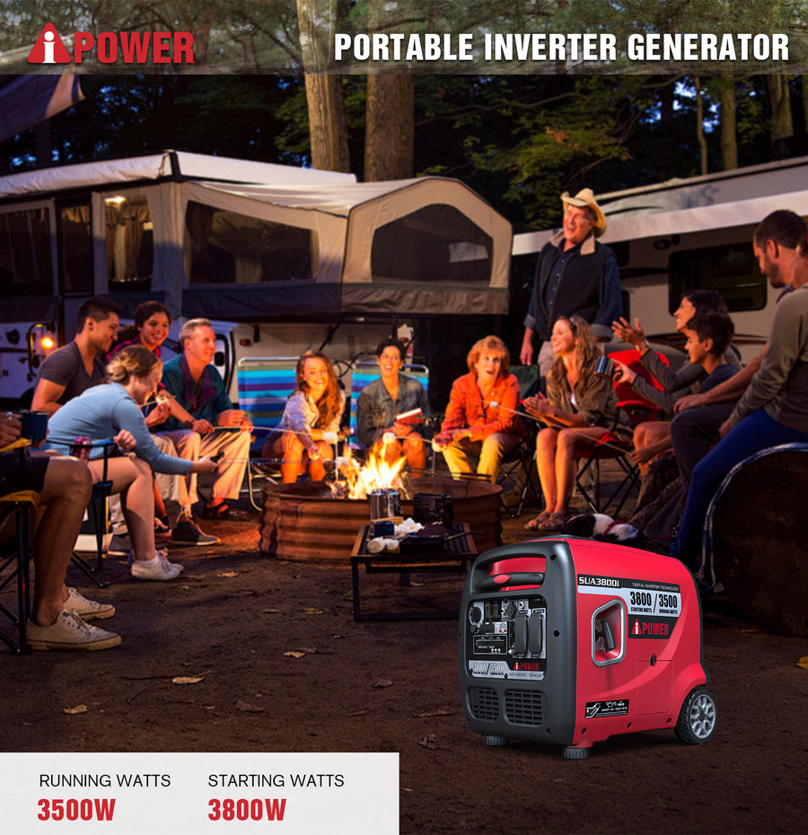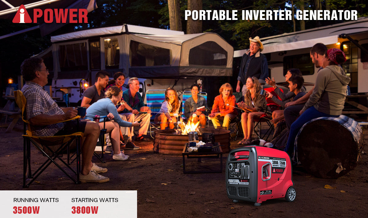 The A-iPower SUA3800i is a powerful and quiet portable inverter generator designed for home backup, RV travel, outdoor events, and recreational use. Delivering 3500 running watts and 3800 starting watts, it provides reliable 120V power while producing clean, stable electricity that is safe for sensitive electronics.