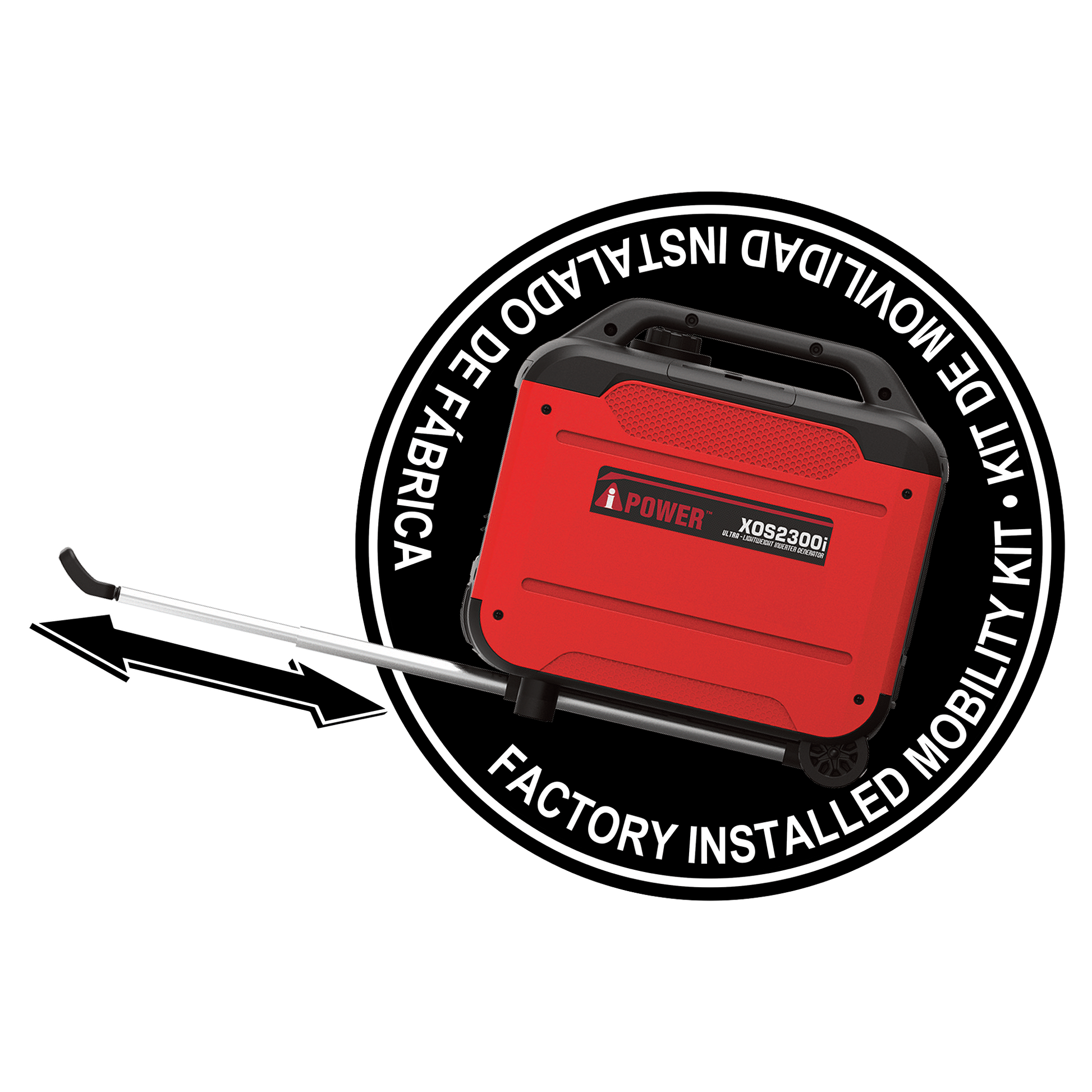 | The EPA Certified A-iPower XOS2300i inverter generator, lightweight at just 40.8 pounds, is ANSI/PGMA G300 Compliant and includes CO Sensor Shutdown. With 2300 Starting and 1800 Running Watts using gas, the .9-gallon gas tank provides up to nine hours of runtime. The 80cc recoil start engine operates at as low as 52dB noise level, while the unit has pure sine wave with <3% THD and an all-copper alternator. Parallel cables are included, as the inverter has a multi-featured data center, an illuminated control panel, and an integrated wheel kit. | Regular price