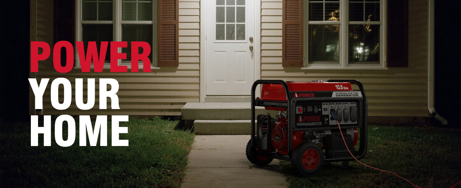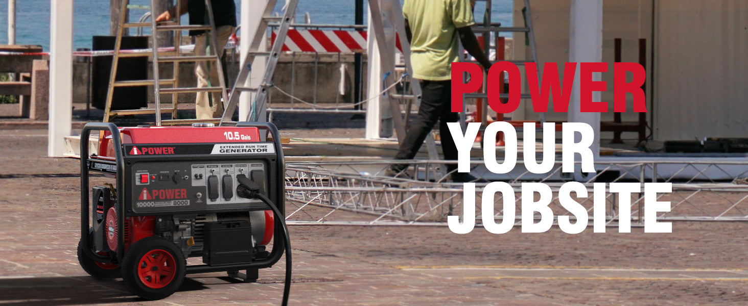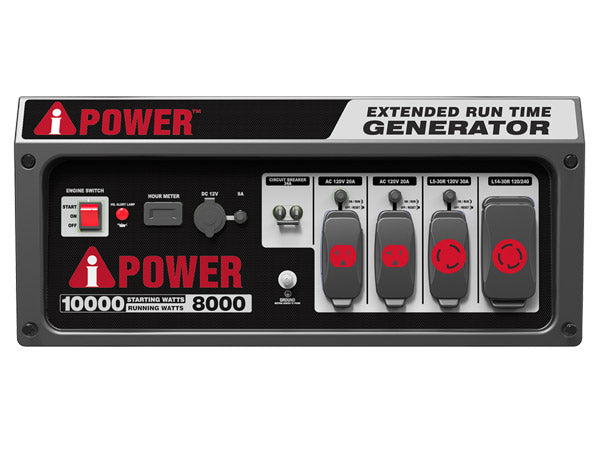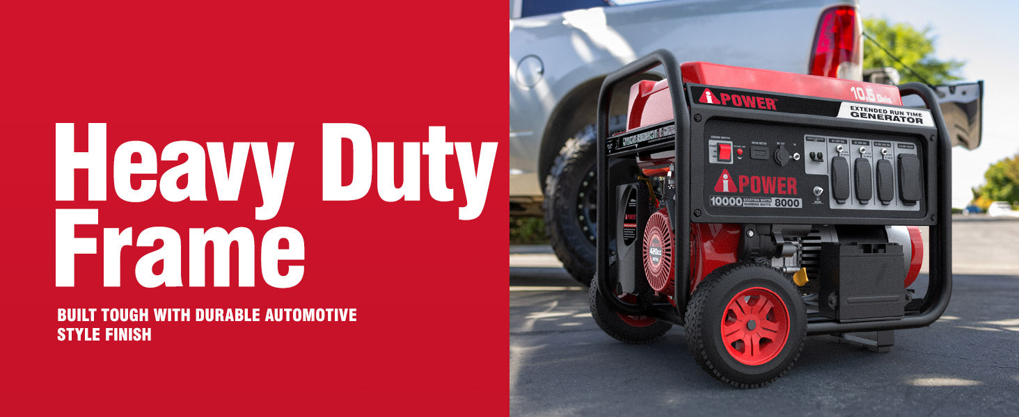 The A-iPower AP10000E Portable Generator produces up to 10,000 starting watts and 8,000 running watts. The heavy-duty 420cc 4-Stroke OHV engine is constructed of a durable cast iron sleeve, with a 10.5 gallon (40L) extra-large gas tank that keeps you powered through the day with a built-in fuel gauge and an automatic low oil shutdown.