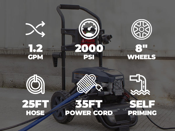 - High Output: 2000 PSI @ 1.2 GPM for outstanding cleaning power