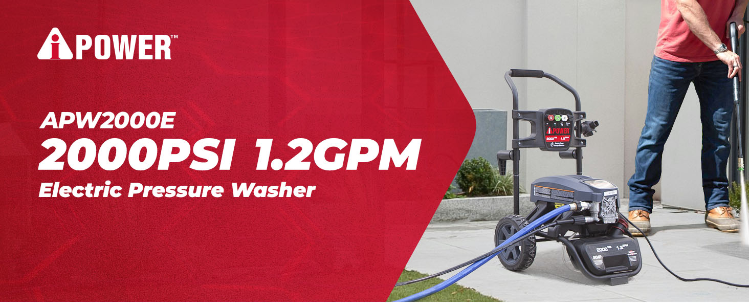 The APW2000E PSI Electric Pressure Washer offers 2000 PSI at 1.2 gallons per minute for outstanding cleaning power. Equipped with an AC plug, the push-button starting system offers quick and convenient use, with a GFCI-protected power cord.