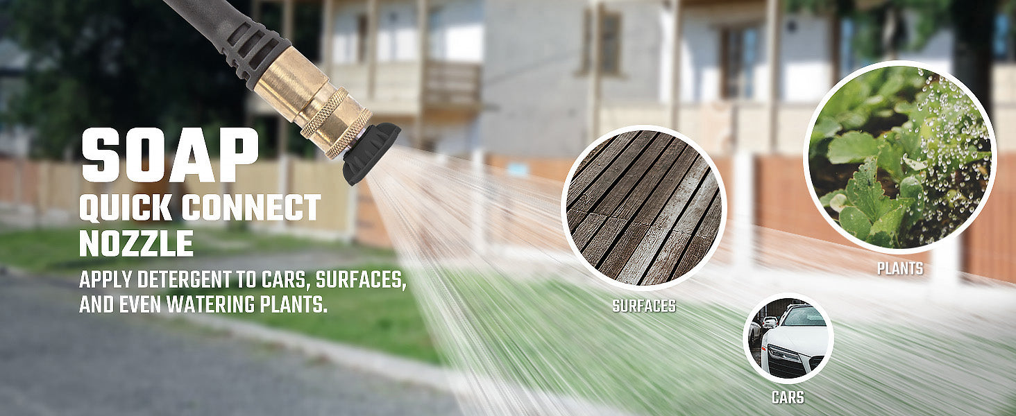 - Nozzles & Soap Tank: 4 Pro-Style nozzles - including turbo nozzle and integrated soap tank for efficient cleaning power