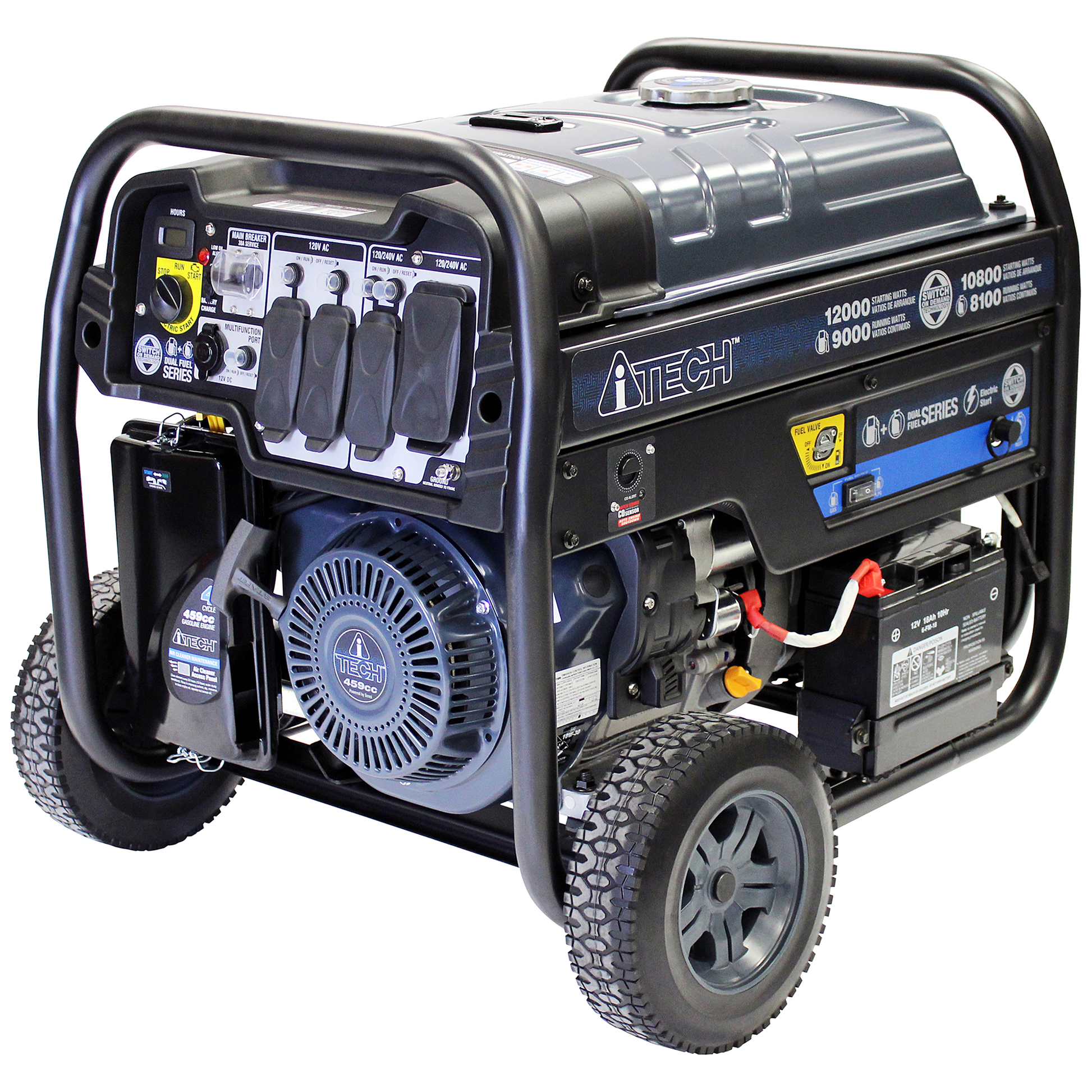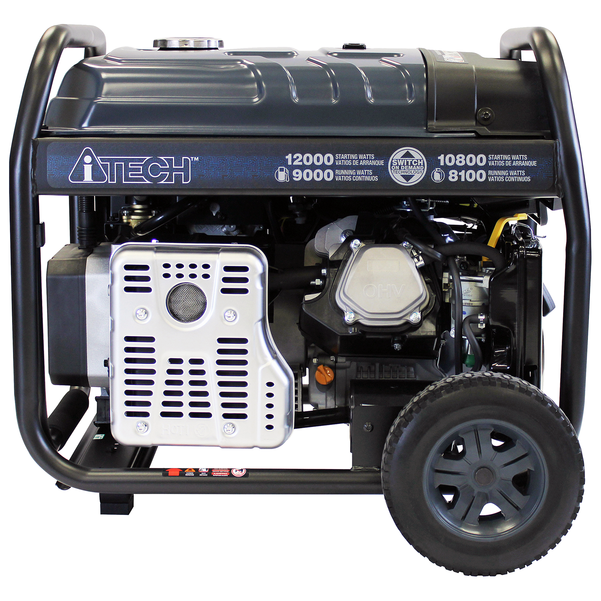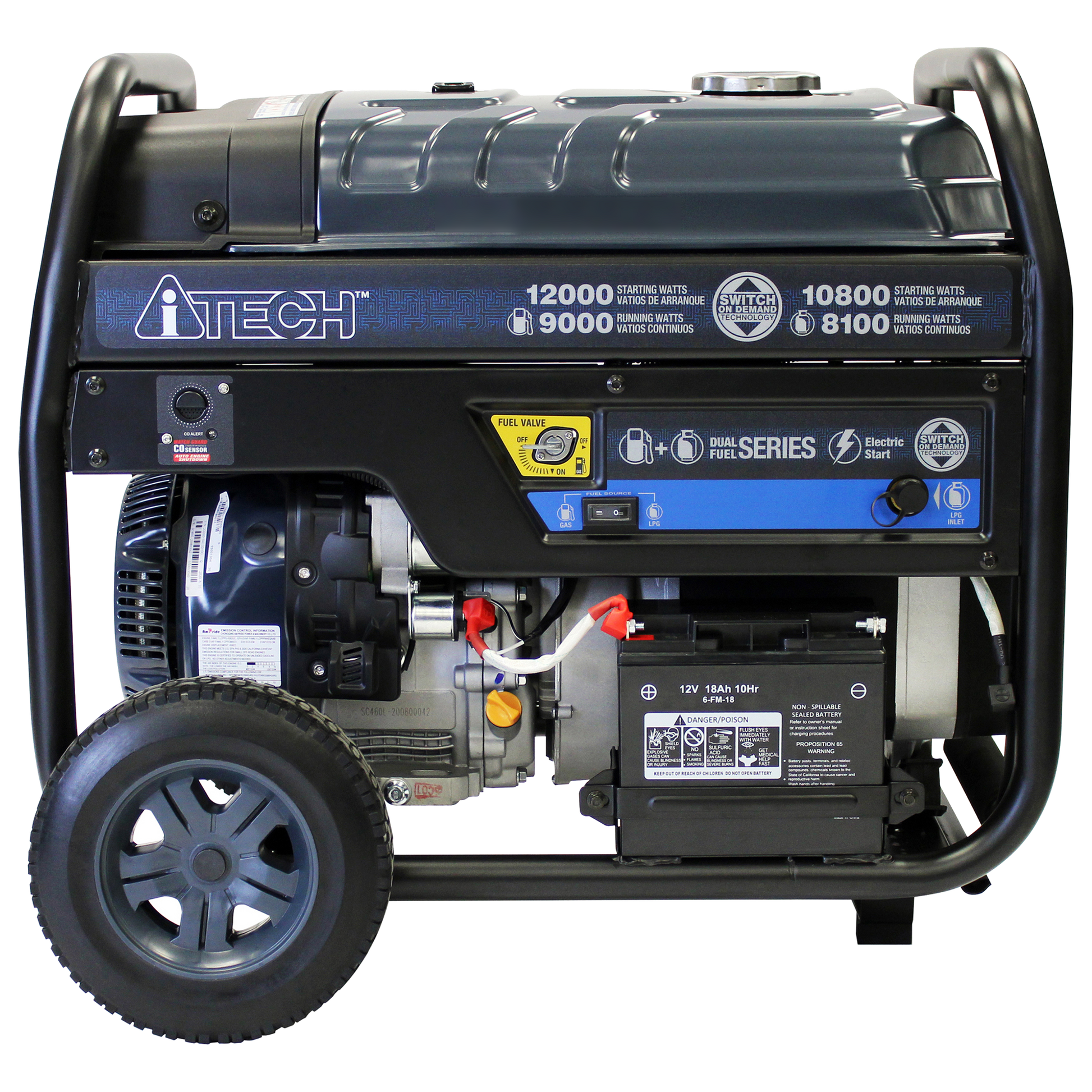- High Output: 12,000 starting watts - 9,000 running watts on gasoline; 10,800 starting watts - 8,100 running watts on propane