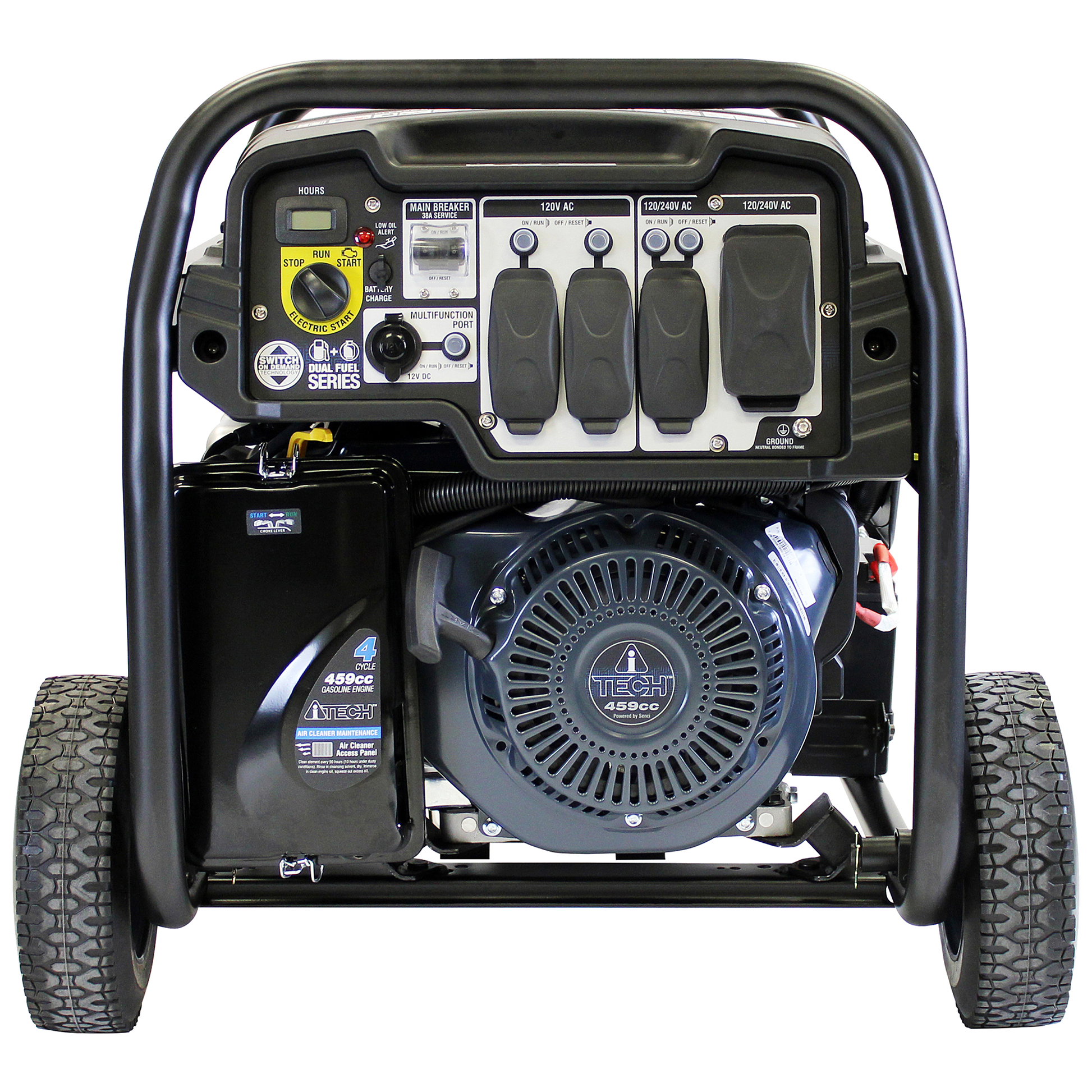 AT10-212001 型号发电机使用汽油时启动功率为 12,000 瓦,运行功率为 9,000 瓦;使用丙烷(液化石油气)时启动功率为 10,800 瓦,运行功率为 8,100 瓦。其强劲的 459 cc OHV 四冲程发动机配备低油量报警灯和低油量自动停机功能,确保您的发电机年复一年稳定运行。