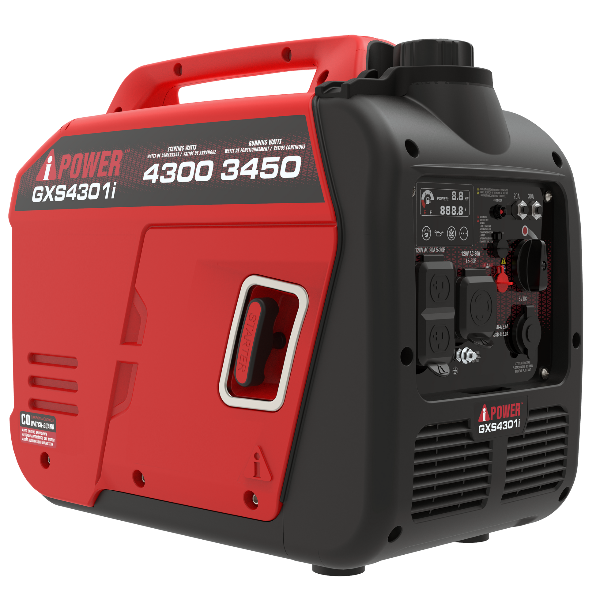 - High Output: 4,300 starting watts - 3,450 running watts