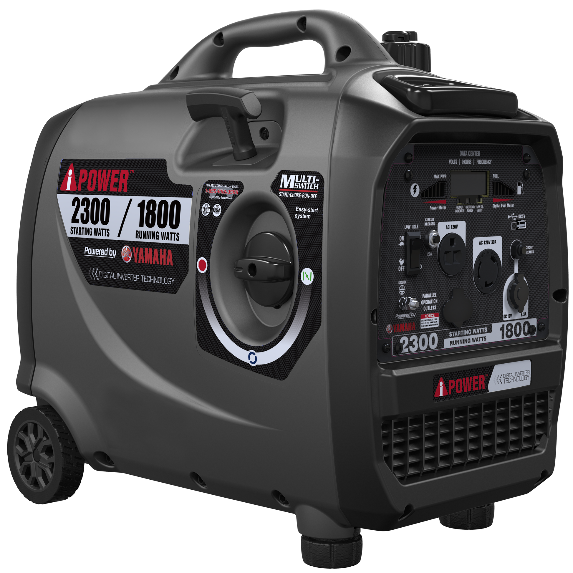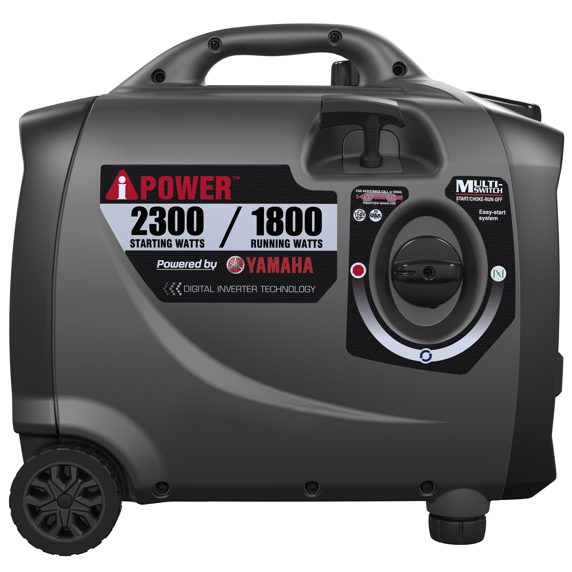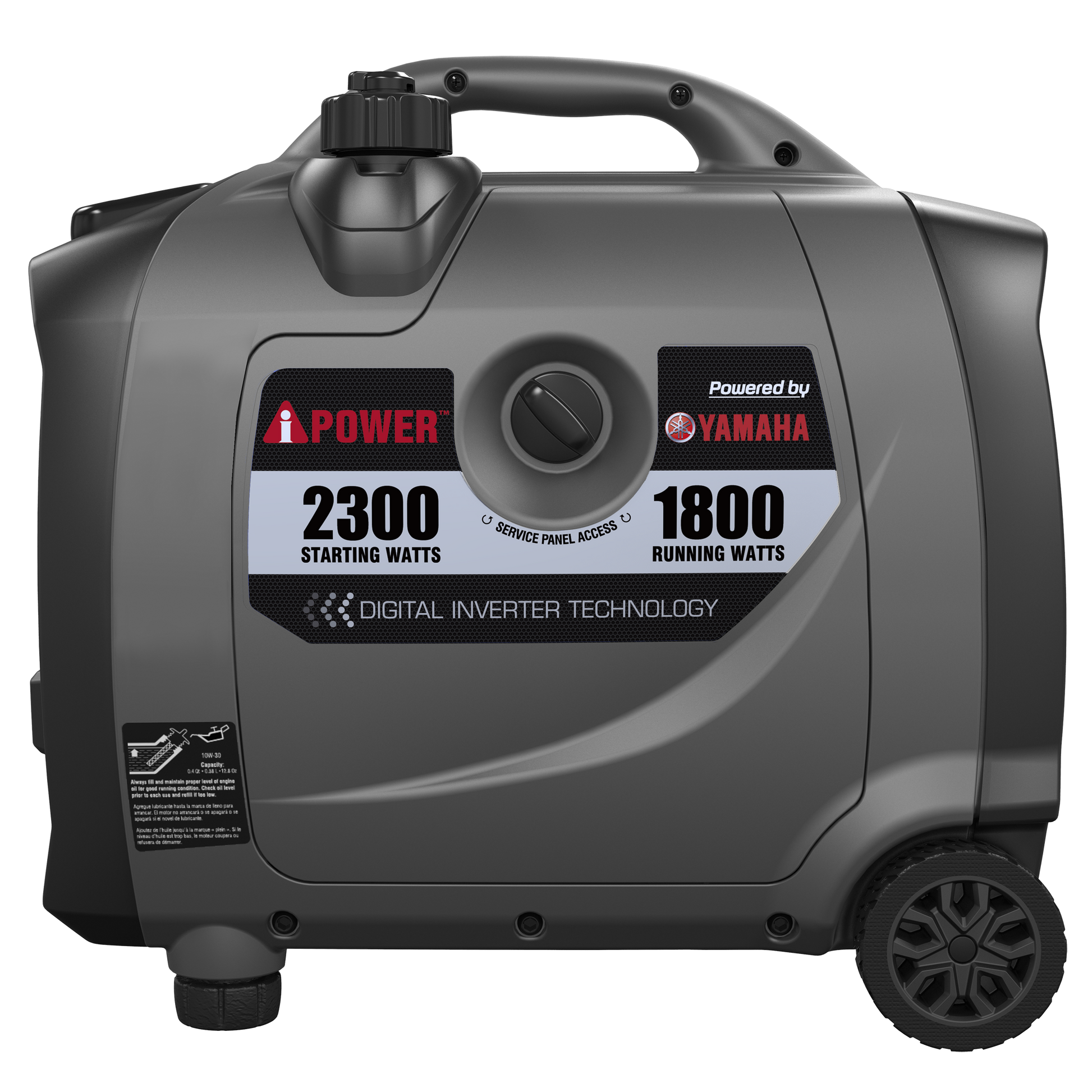 | Powered by a Yamaha 80cc OHV high performance 4 cycle engine, this inverter generator has 2,300 starting watts with 1,800 running watts. It keeps sensitive electronics safe, as it has <3% THD of clean power output. With low idle technology, it has an extended run time of 10 hours at 25% load. Operating at as low at 62 decibels, it is ideal for home, camping, tailgating and Rving. Complete with parallel ports for double the power output when linked together, the compact unit is lightweight, making it easy to transport with telescoping handle and wheels. | Regular price