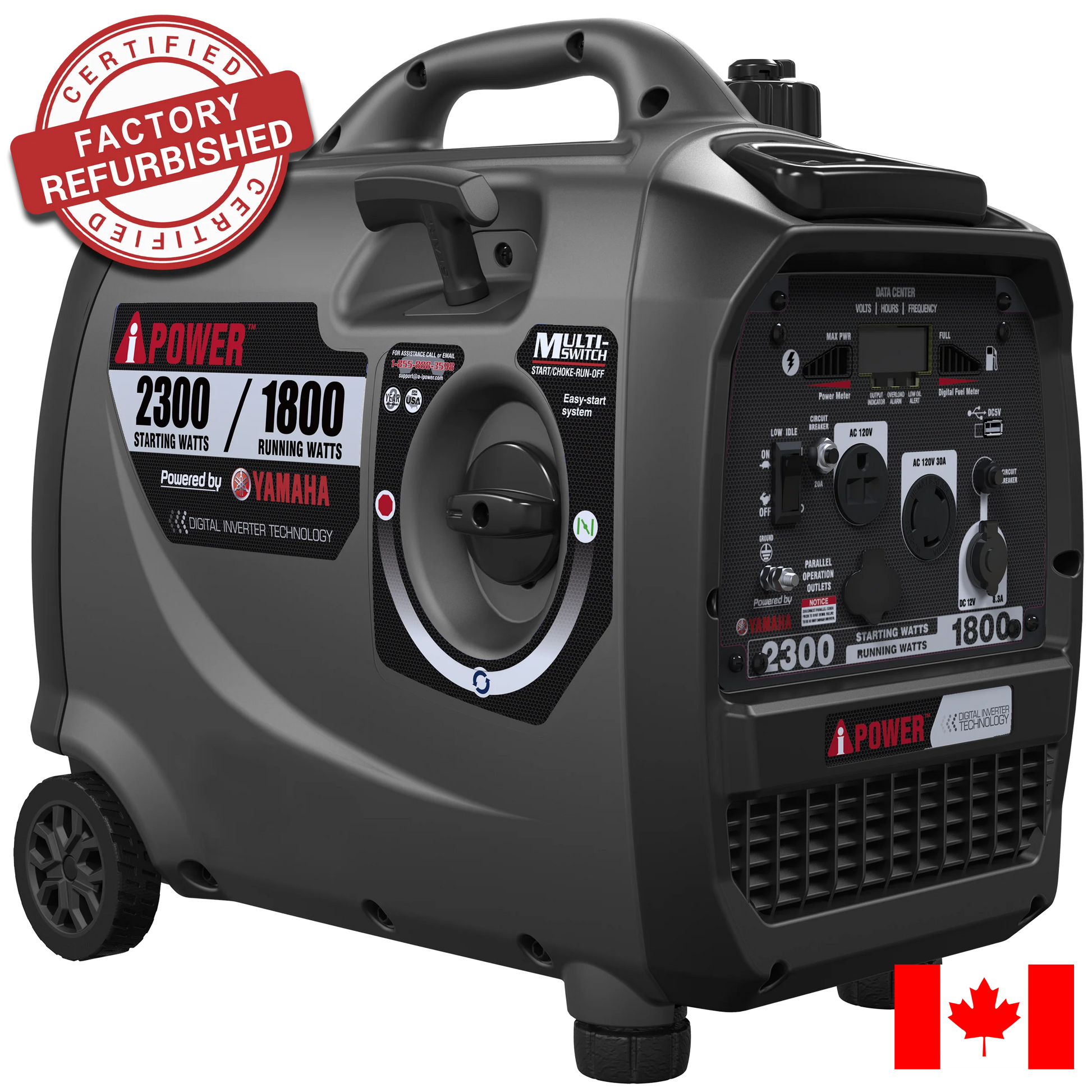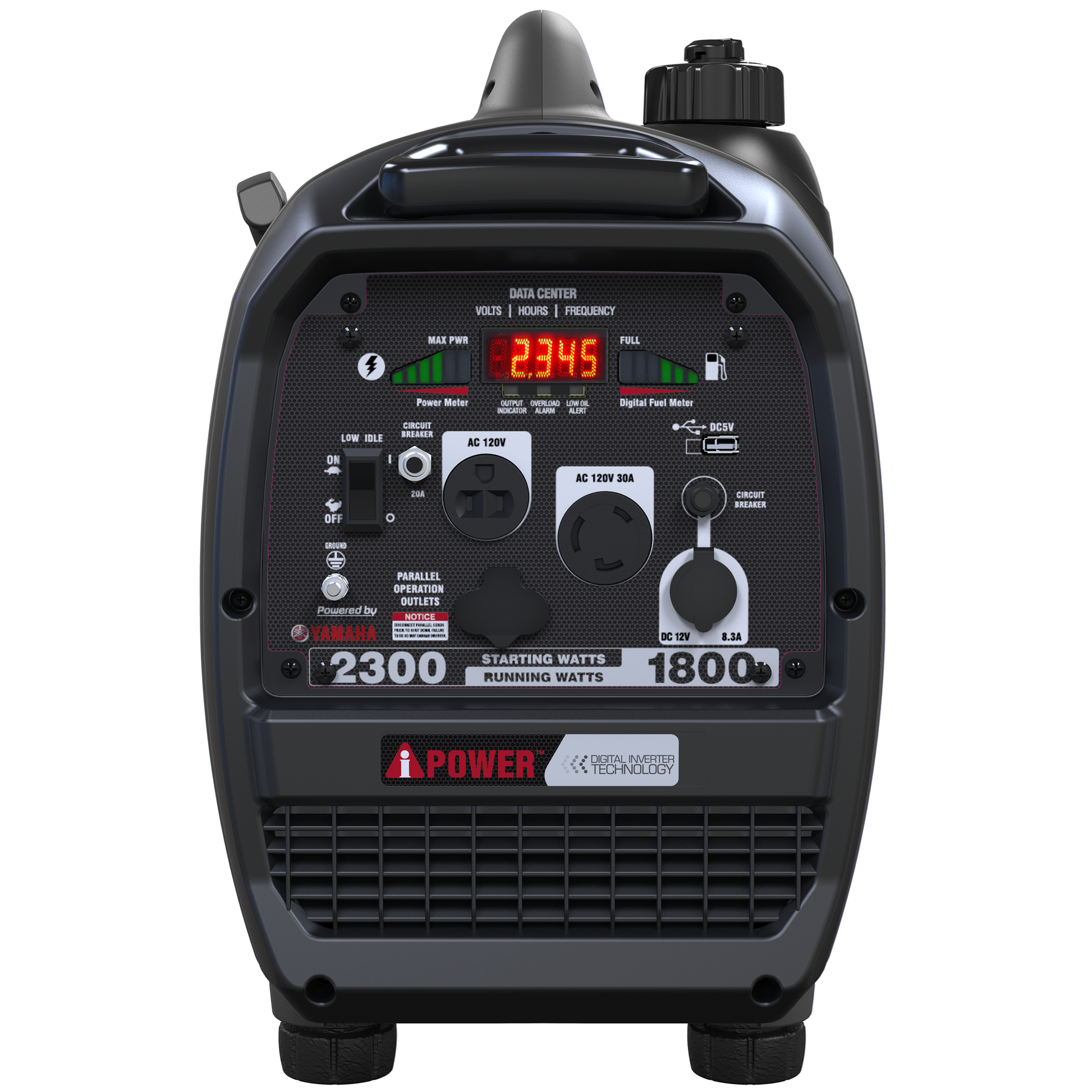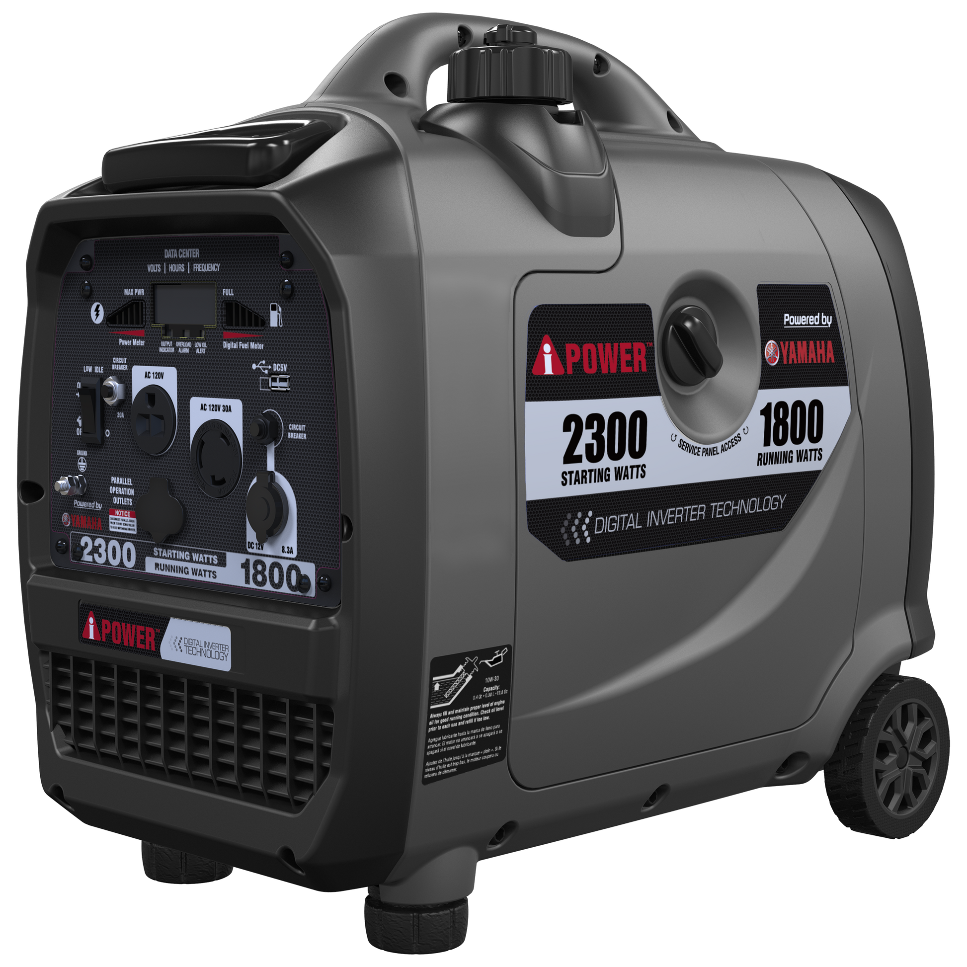 | Powered by a Yamaha 80cc OHV high performance 4 cycle engine, this inverter generator has 2,300 starting watts with 1,800 running watts. It keeps sensitive electronics safe, as it has <3% THD of clean power output. With low idle technology, it has an extended run time of 10 hours at 25% load. Operating at as low at 62 decibels, it is ideal for home, camping, tailgating and Rving. Complete with parallel ports for double the power output when linked together, the compact unit is lightweight, making it easy to transport with telescoping handle and wheels. | Regular price